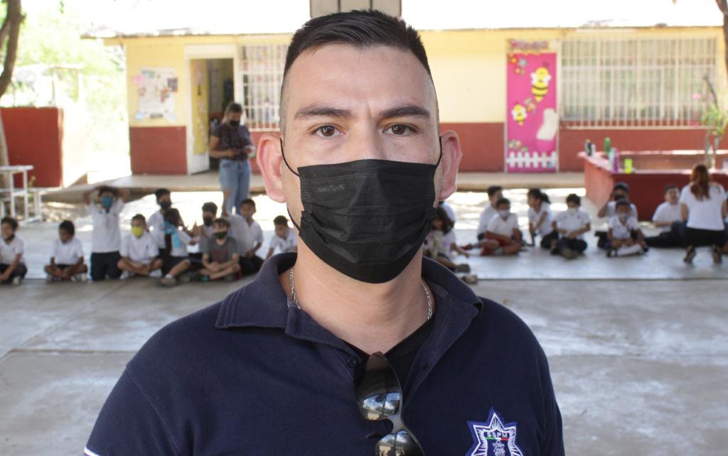 Jorge Alberto Ramírez de la Rosa, titular del programa, encabezó las actividades realizadas en la escuela primaria “Ignacio Aldama” de la colonia Huertos Familiares, donde unos 200 niños de entre 6 y 12 años de edad, participaron en las dinámicas para identificar situaciones de riesgo, y fomentar el autocuidado y la práctica de acciones de prevención en el hogar y en la escuela, incentivando una cultura de la prevención y la relación escuela-policías.