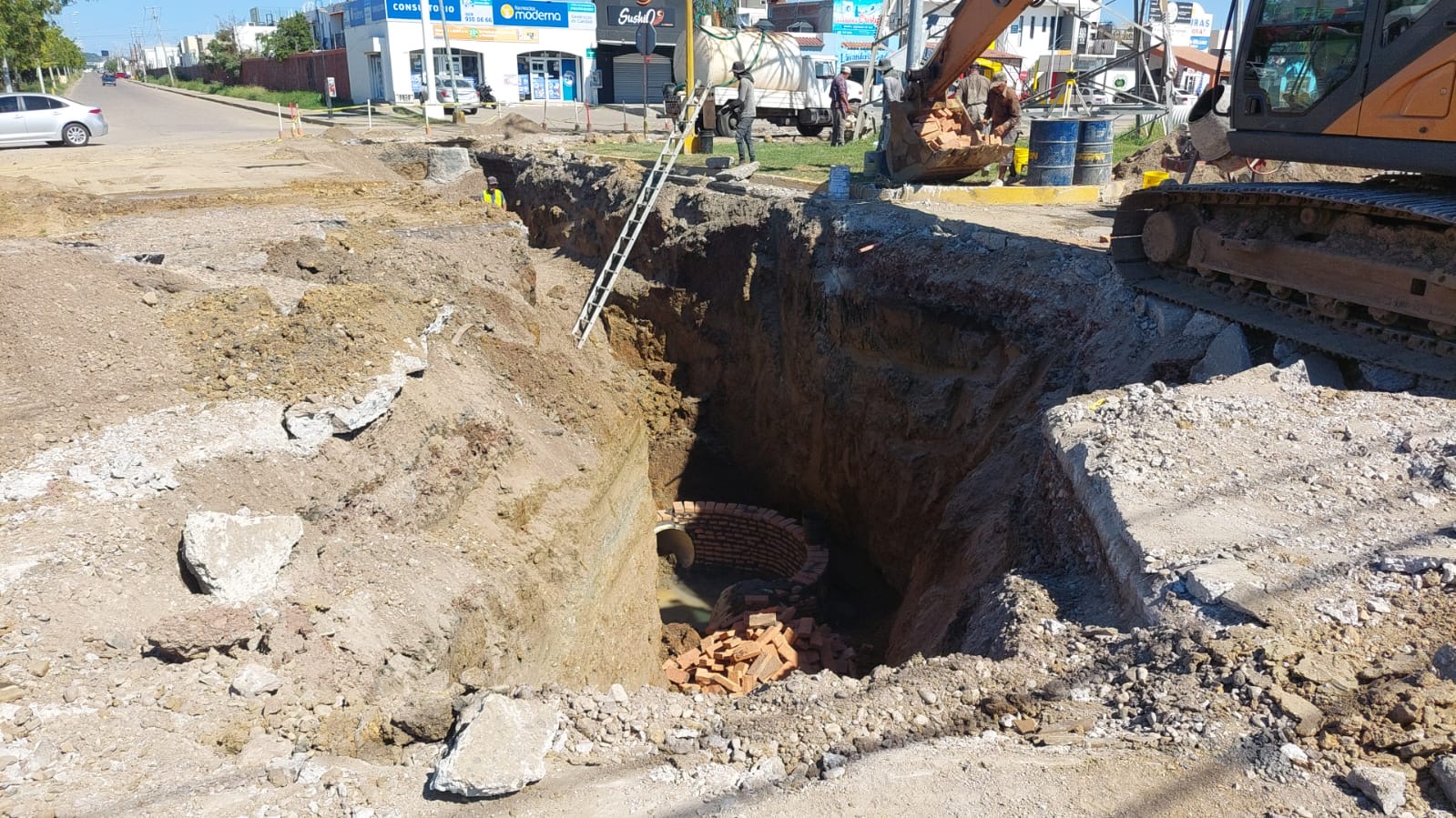 Los trabajos se realizan con mucho cuidado, debido a que la nueva tubería va a 5.5 metros de profundidad
