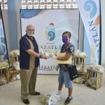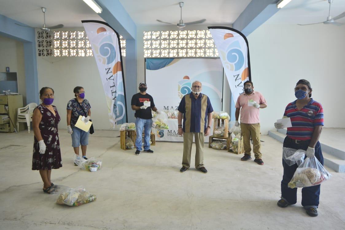 La tarde de este jueves, el Alcalde de Mazatlán se reunió con un grupo de vendedores de la Glorieta Sánchez Taboada, a quienes les hizo entrega de 29 despensas con productos de primera necesidad, así como 29 ayudas económicas de 400 pesos cada una.