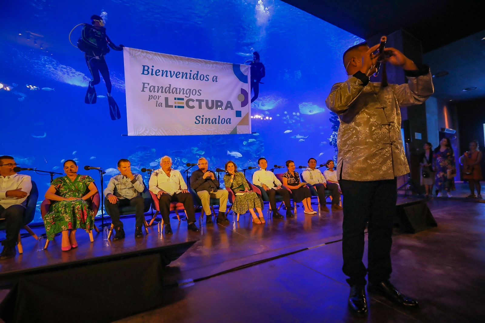 Mazatlán, Sinaloa, a 28 de noviembre de 2023.- Como una acertada iniciativa para promover la lectura entre la juventud, consideró el gobernador Rubén Rocha Moya los Fandangos por la Lectura que promueve la doctora Beatriz Gutiérrez Müller, como parte de la Estrategia Nacional de Lectura en todo el país, y que en esta ocasión se celebró en Mazatlán, teniendo como sede las instalaciones del Gran Acuario Mar de Cortés.