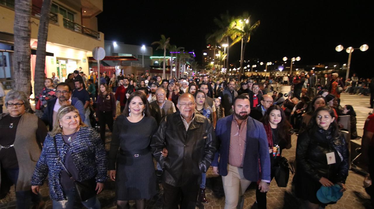 Previamente, el Químico Luis Guillermo Benitez Torres, Alcalde de Mazatlán; Gabriela Peña Chico, Presidenta del Sistema DIF Municipal; y José Ángel Tostado, Encargado del Despacho del Instituto de Cultura, Turismo y Arte, entre las actividades del día del FELIM 2020, encabezaron el recorrido literario, en la que cientos de personas visitaron una parte del Centro Histórico de Mazatlán para encontrarse con la poesía de Amado Nervo y la obra dramática de Óscar Liera a través del baile, la música, el canto y el teatro, acompañadas por espectaculares “Calaveras Catrinas”, grafitis y otros elementos artísticos.