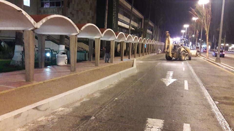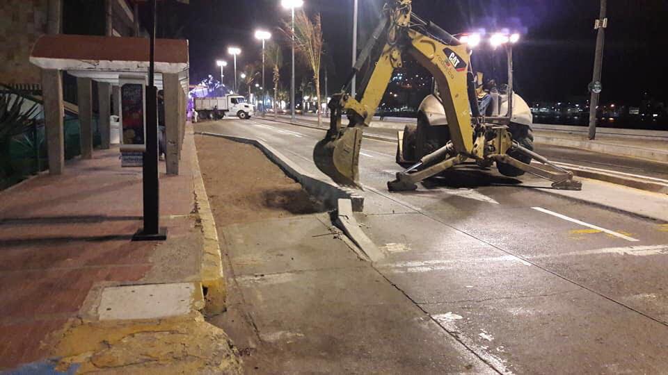 Mazatlán.- La presión social tuvo efecto este lunes por la noche, cuando la autoridad realiza los trabajos pertinentes para “enderezar” la Avenida del Mar en Mazatlán, misma que apenas hace algunos meses fue construída para embellecer el espacio turístico más emblemático de la ciudad.