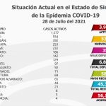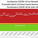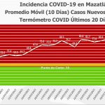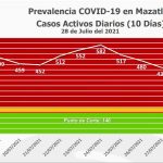 Mencionó que Mazatlán continúa en color rojo del Semáforo Epidemiológico Estatal y en tercer lugar de casos activos en Sinaloa, por superado por los municipios de Culiacán y Ahome que este día tienen mil 577 y 554 respectivamente.