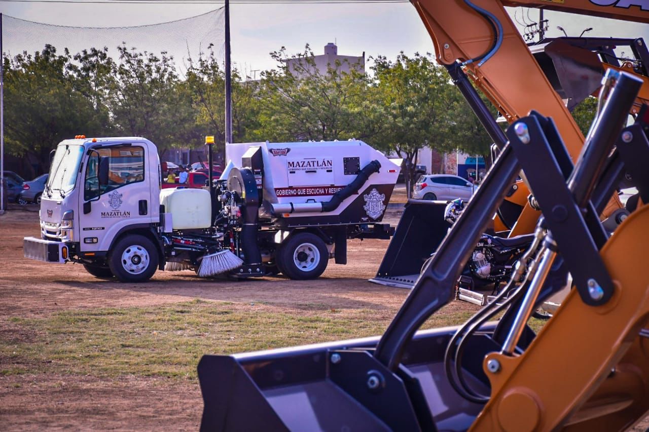 Mazatlán, Sinaloa 29 junio 2023.- Con el fin de seguir priorizando la atención de los servicios públicos en Mazatlán, el gobierno municipal entregó equipamiento y maquinaria para obras públicas y servicios públicos.