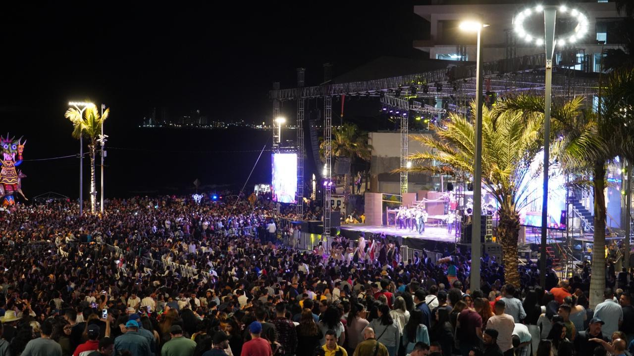 Personas de todas las edades llegaron desde temprana hora en una de las sedes del Carnaval Internacional de Mazatlán, donde a partir de las 20:00 horas inició el espectáculo con la presentación musical de Germán Peralta, posteriormente el Ballet Folclórico del Instituto de Cultura, a cargo del Maestro Javier Arcadia, realizó coreografías que evocaban y homenajeaban a todos los pescadores de Latinoamérica, para iniciar el evento real, que se vio iluminado por un cielo lleno de juegos artificiales.