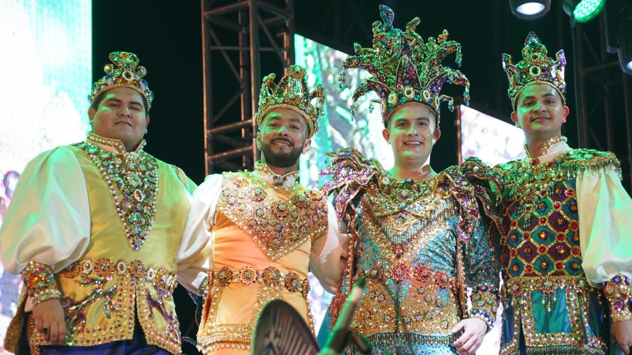 Su Gran Majestad Libia II, Reina Electa del Carnaval de Mazatlán, coronó a Paco I, mientras que Brianda I, Reina Electa de Los Juegos Florales de Somos América, se encargó de poner el distintivo real a Fernando Espinoza, quien estuvo acompañado de Raudel Chávez y Ramsés González, como Duque y Marqués, respectivamente, para completar la realeza y hacer sonar los papaquis.