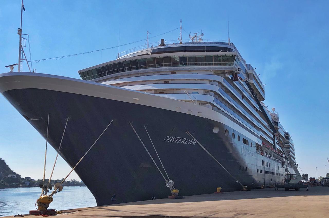 El primero en llegar al muelle de la Administración Portuaria Integral fue el Oosterdam, a las 06:45 horas aproximadamente, procedente de Puerto Vallarta, con 1,978 pasajeros y 777 tripulantes; tiene programado continuar su viaje marítimo con destino a Cabo San Lucas, a las 17:00 horas.