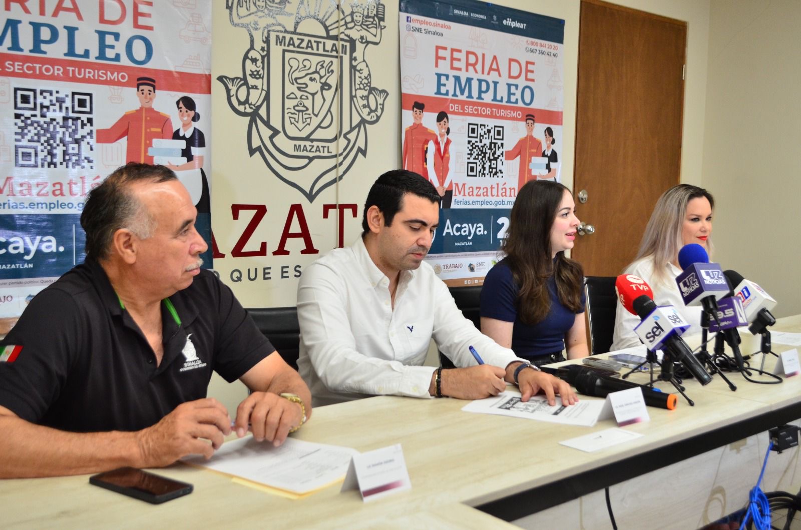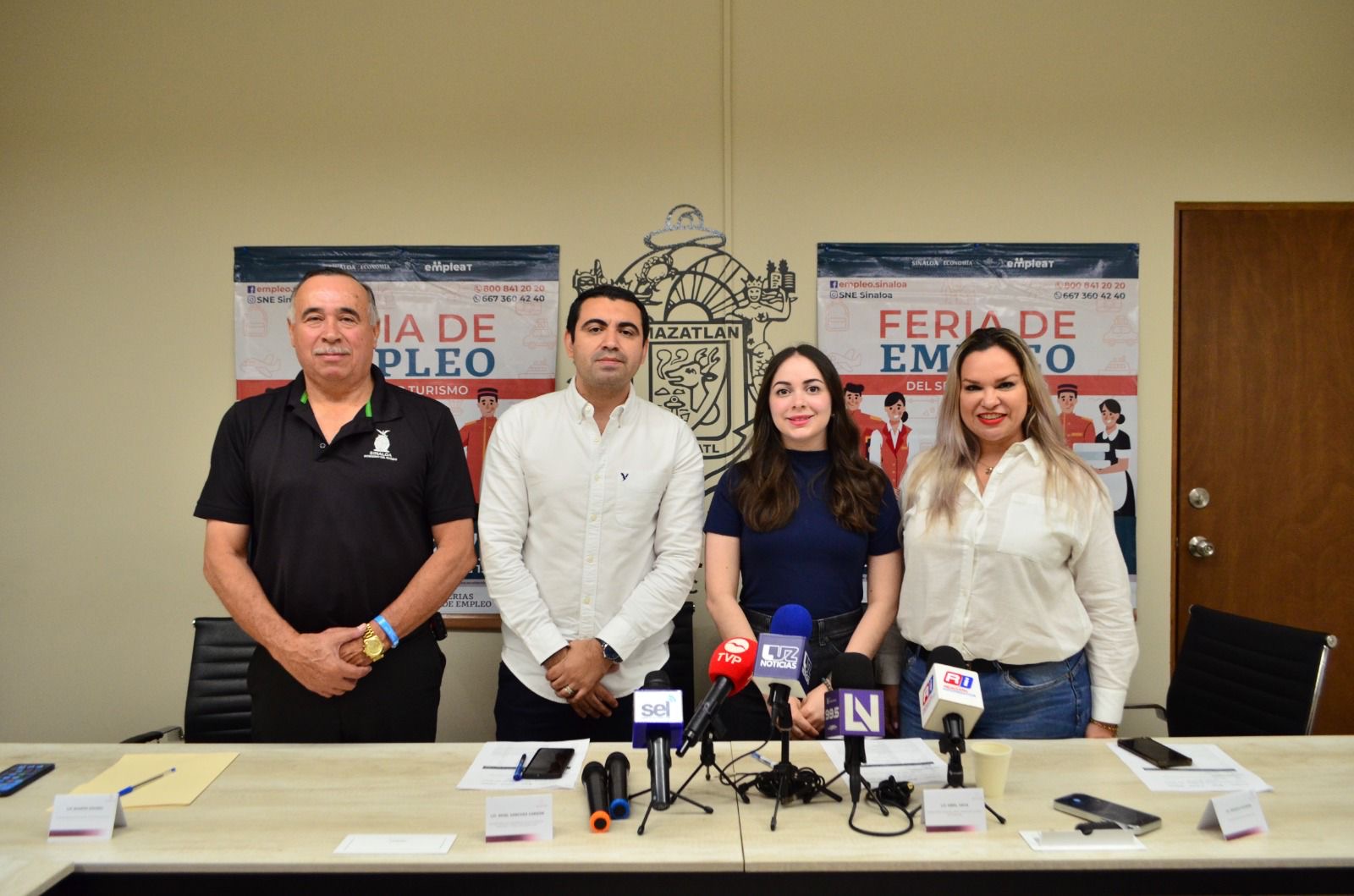A esta rueda de prensa asistieron Ramón Osorio, Coordinador Estatal del Servicio Nacional del Empleo en Sinaloa; Jessica Patrón, coordinadora general de la Zona sur del Servicio Nacional del Empleo en Sinaloa.