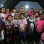Inaugura la Presidenta Municipal, Estrella Palacios Domínguez, la iluminación de dos campos de béisbol, así como de los andadores del recinto deportivo