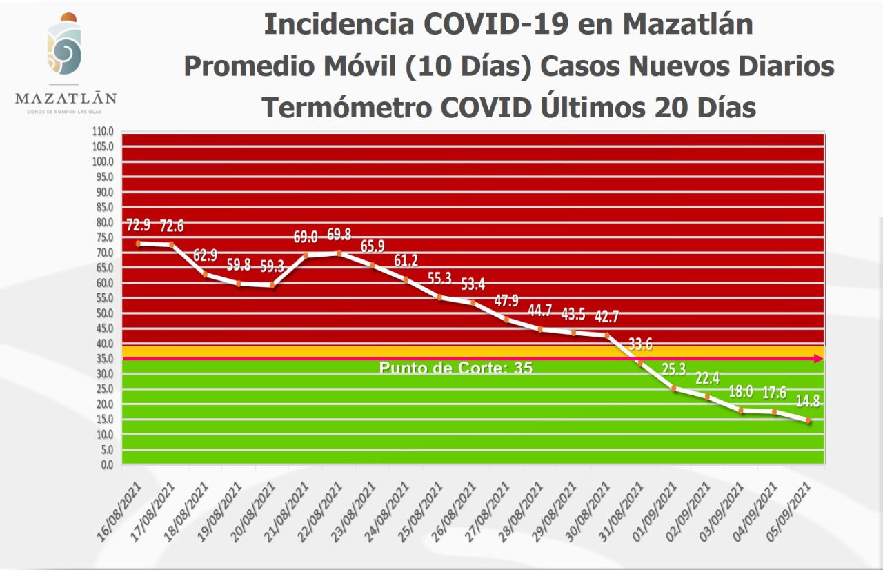 Dijo que en comparación con la fecha del año anterior, cuando presentaba 163 pacientes del virus Sars-Cov-2, hoy Mazatlán tiene un descenso casi del 100 por ciento en los casos, lo que muestra un mejor manejo de la situación y la notable colaboración de la ciudadanía.
