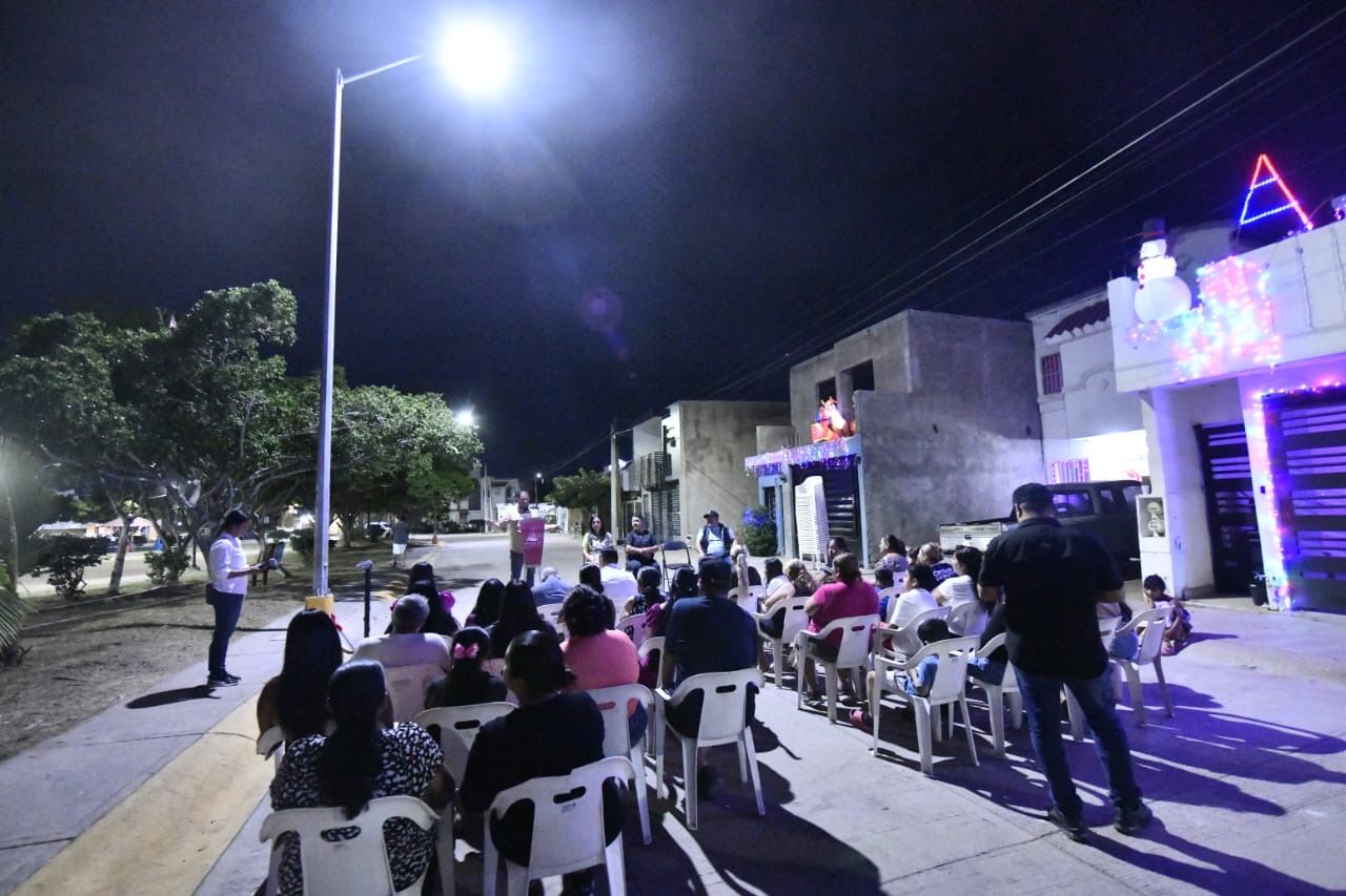 Mazatlán, Sinaloa, 4 de diciembre de 2025.- Habitantes del fraccionamiento Urbivilla del Real fueron beneficiados este jueves con la instalación de 466 luminarias ahorradoras LED, a través del programa “Mazatlán Brilla”, que impulsa el Gobierno de la Presidenta Estrella Palacios Domínguez.