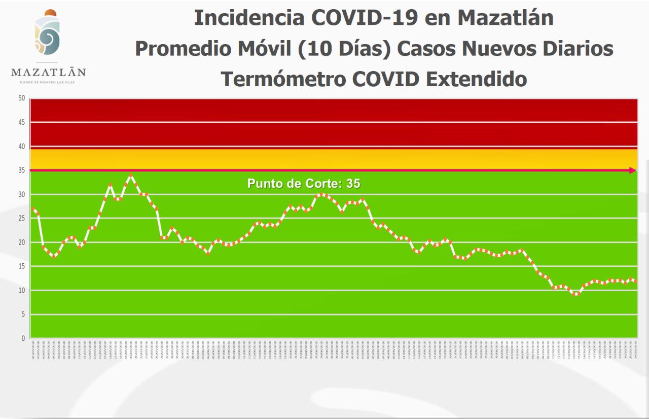 Mencionó que los termómetros Covid y de Casos Activos retoman la información diaria de la Secretaría de Salud del Estado, que a su vez se alimenta del Sistema Nacional de Vigilancia Epidemiológica, y ésta la dividen en Mazatlán para sacar los promedios de los últimos 10 días.
