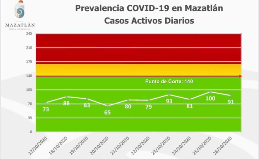 Mazatlán.- La pandemia del Covid-19 en el municipio ha estado muy controlada gracias a las protocolos y medidas sanitarias implementadas oportunamente, y prueba de ello son los 83 casos activos que en promedio se han mantenido en los últimos días.