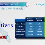 Mazatlán, SIN.- Esta semana se reflejó en plataforma 712 recuperados, 1,014 nuevos casos y una defunción, colocando en 1,373 los casos activos en el municipio de Mazatlán, ubicándose en segundo lugar estatal después de Culiacán, el cual se encuentra en primera posición con 3,335 casos activos.
