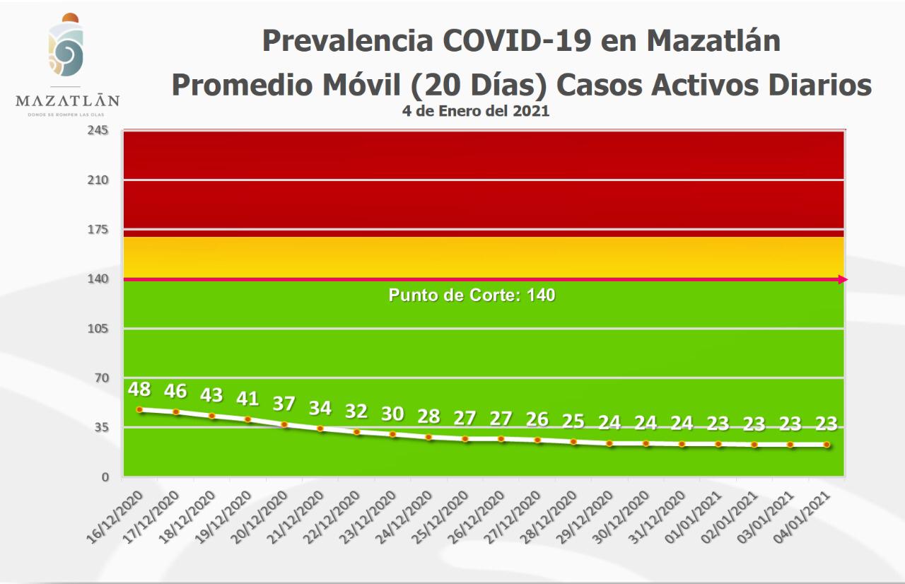 Mazatlán.- Este municipio es el segundo con más población en el estado, sin embargo, es el que ha mostrado un mejor manejo de la pandemia del Covid-19, pues al día de hoy se ubica por cuarta posición con 26 casos activos, por debajo de Culiacán (227), Guasave (72) y Ahome (47).