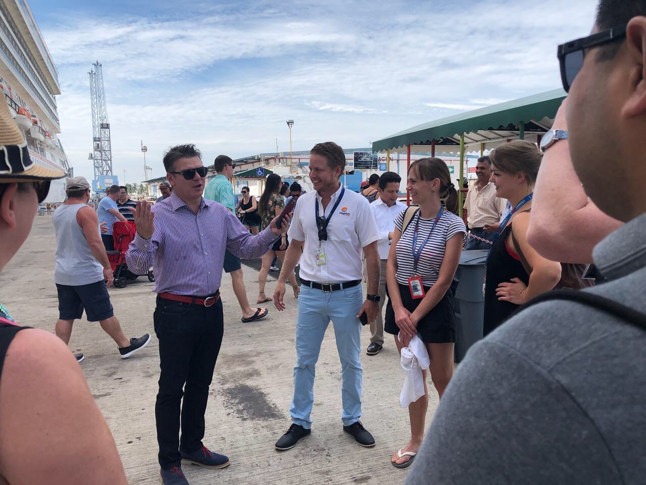 El Secretario de Turismo, Oscar Pérez Barros, realizó un recorrido por las instalaciones del recinto portuario de la Administración Portuaria Integral para dar la bienvenida a los cruceristas, destacando la importancia que implica su visita por la derrama económica que provocan en el sector.