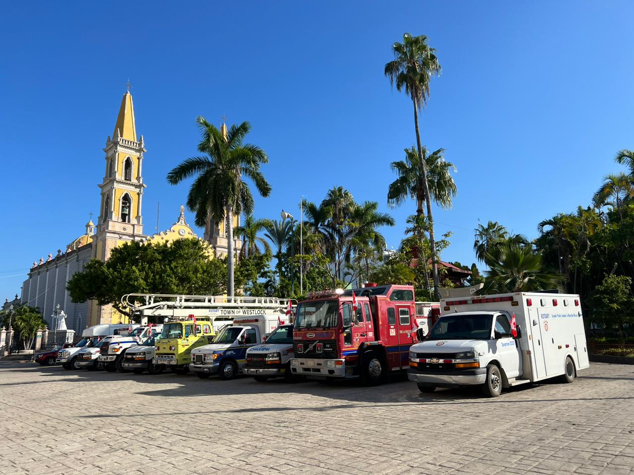 Mazatlán, Sinaloa a 7 de noviembre del 2022.-El Gobierno de Mazatlán encabezado por el Alcalde Edgar González Zatarian recibió este lunes 6 unidades de rescate, transporte y protección civil que fueron donadas por Club Rotary Internacional a través del proyecto Highway to México, vehículos que ayudarán a proteger la vidas de la población.