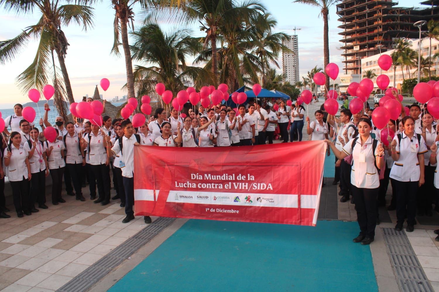 Mazatlán, Sinaloa a 01 de Diciembre de 2023.- Cada primero de diciembre se conmemora a nivel internacional la lucha contra el Virus de Inmunodeficiencia Adquirida (VIH) y el SIDA, enfermedad que ha cobrado la vida de miles de personas desde hace más de 40 años, por lo que este viernes se celebró en Mazatlán una marcha silenciosa por parte del Malecon y calles del primer cuadro de la ciudad, en la que participaron ciudadanos y autoridades que culminó en la explanada de la Plazuela Republica, frente a Palacio Municipal.