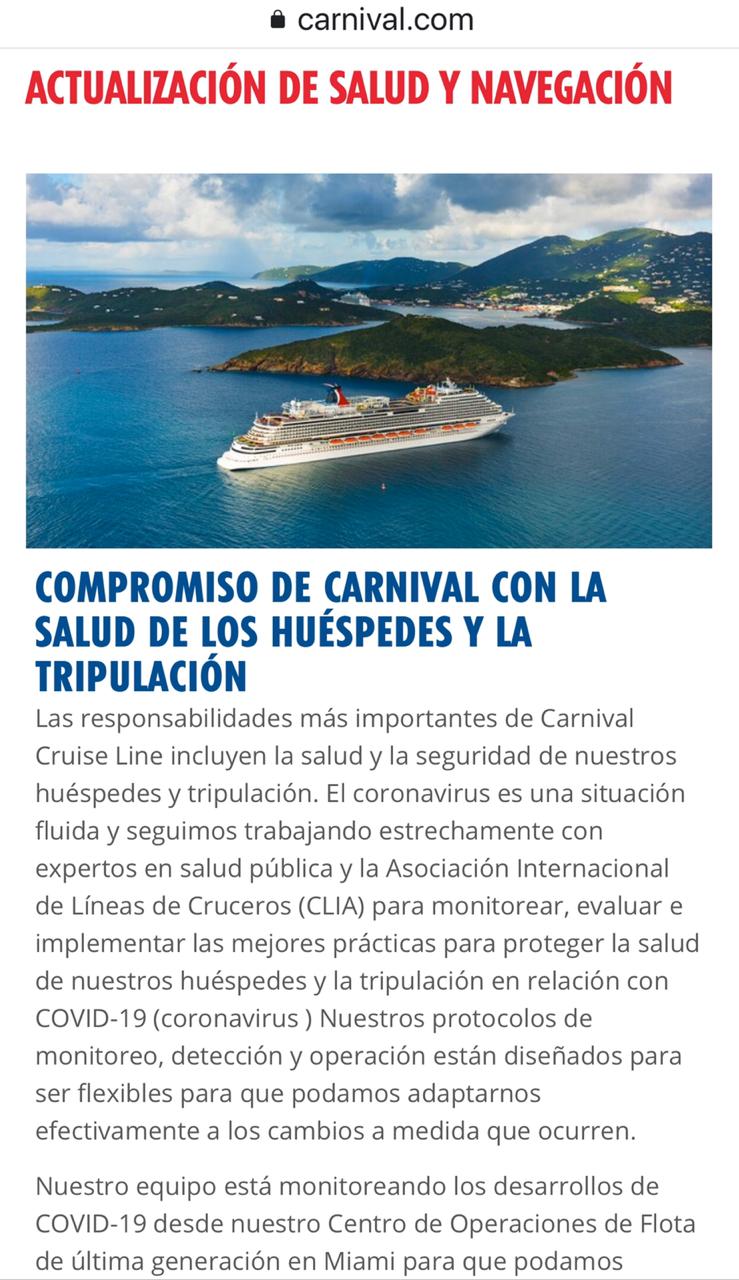 Carnival Cruise Line, decidió algo similar, a parte de este sábado 14 de marzo y hasta