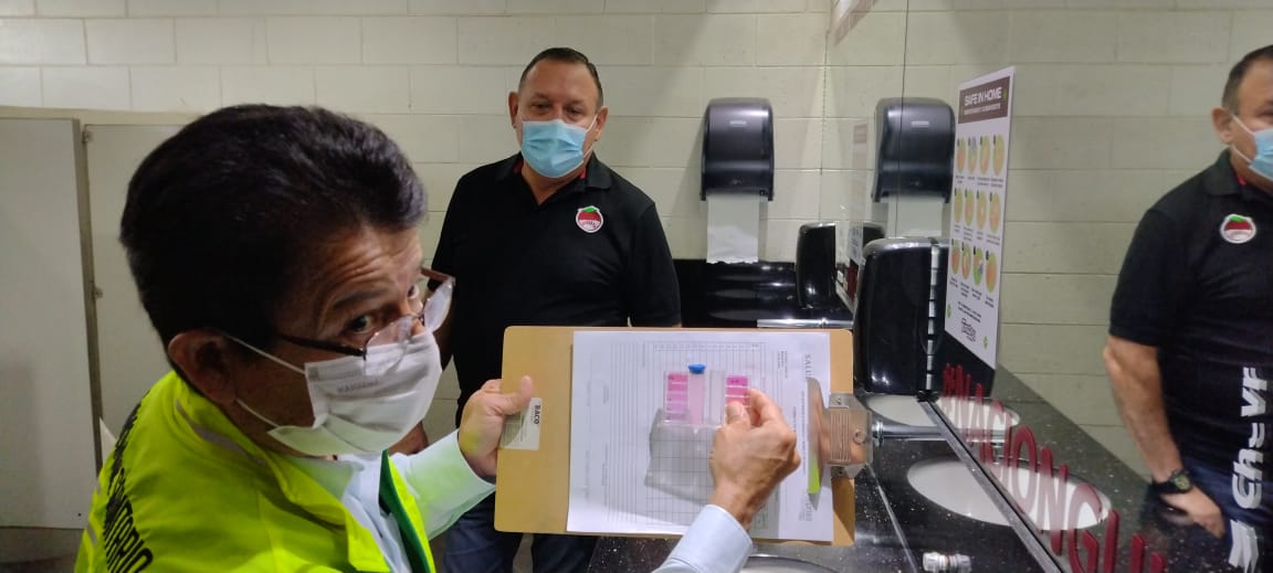 El titular de la Coepriss, Ing. Luis Alonso García Corrales, explicó que, por indicaciones precisas del gobernador, Dr. Rubén Rocha Moya, y del secretario de Salud, Mtro. Héctor Melesio Cuén Ojeda, se realizó una visita de supervisión en el estadio béisbol de Culiacán, donde se observó el cumplimiento de señalización, filtros sanitarios con toma de temperatura corporal, cloración de agua en baños, dispensadores de gel, señalamientos en restaurantes y butacas separadas por grupos, para aforo permitido hasta el 65 por ciento de la capacidad de este edificio.