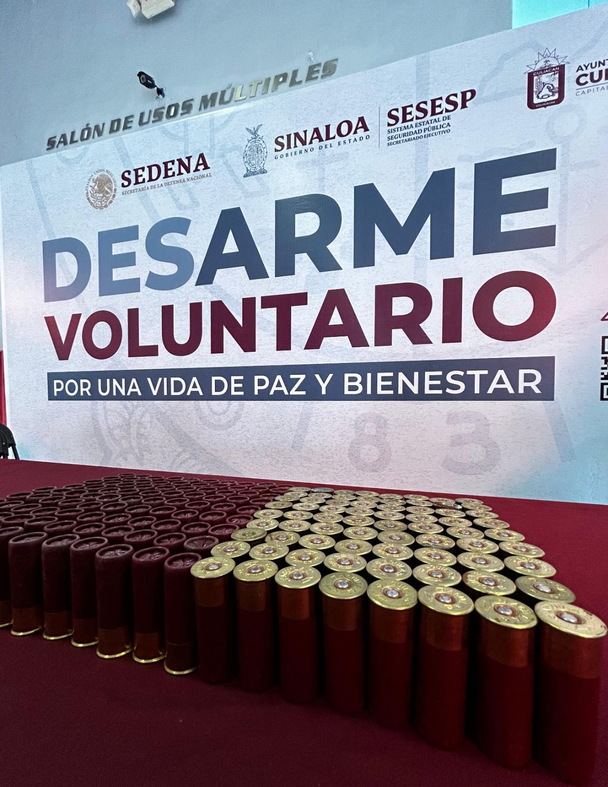 Culiacán, Sin., jueves 24 de octubre.- Ante una gran participación de la ciudadanía del norte del estado que acudió a entregar de manera anónima sus armas, explosivos y balas dentro del programa de Desarme Voluntario, este miércoles se dio por concluida la edición 2024 al llegar a la meta estatal de artefactos a recibir en canje.