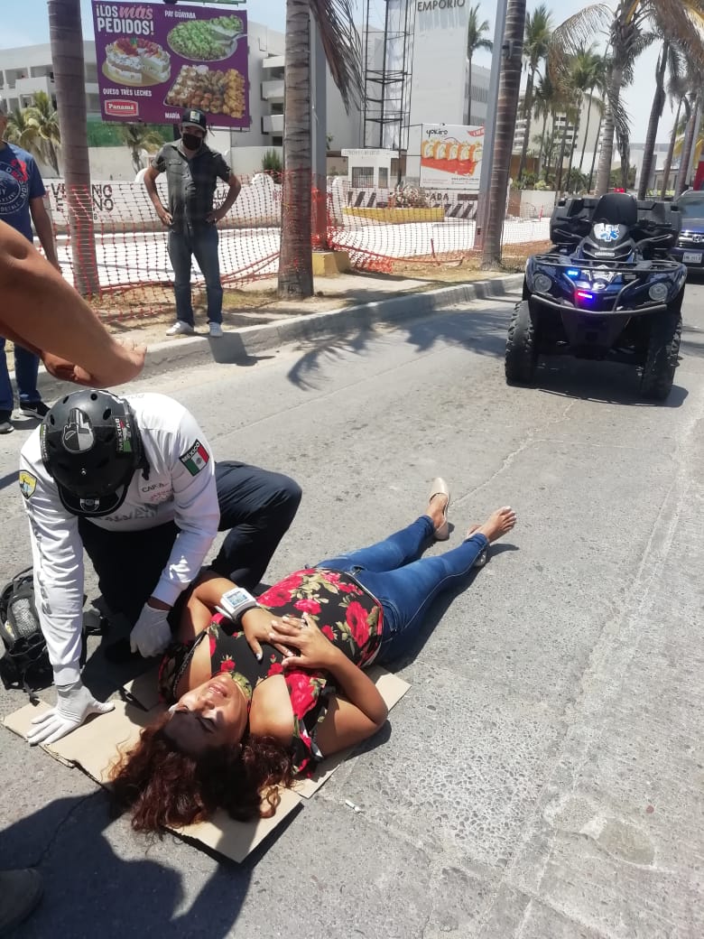 Mazatlán, Sinaloa.- Con lesiones en diversas partes del cuerpo terminó una mujer que intentaba cruzar la carretera pero fue atropellada por el conductor de una motocicleta, quien tras el hecho que se dio a la fuga.