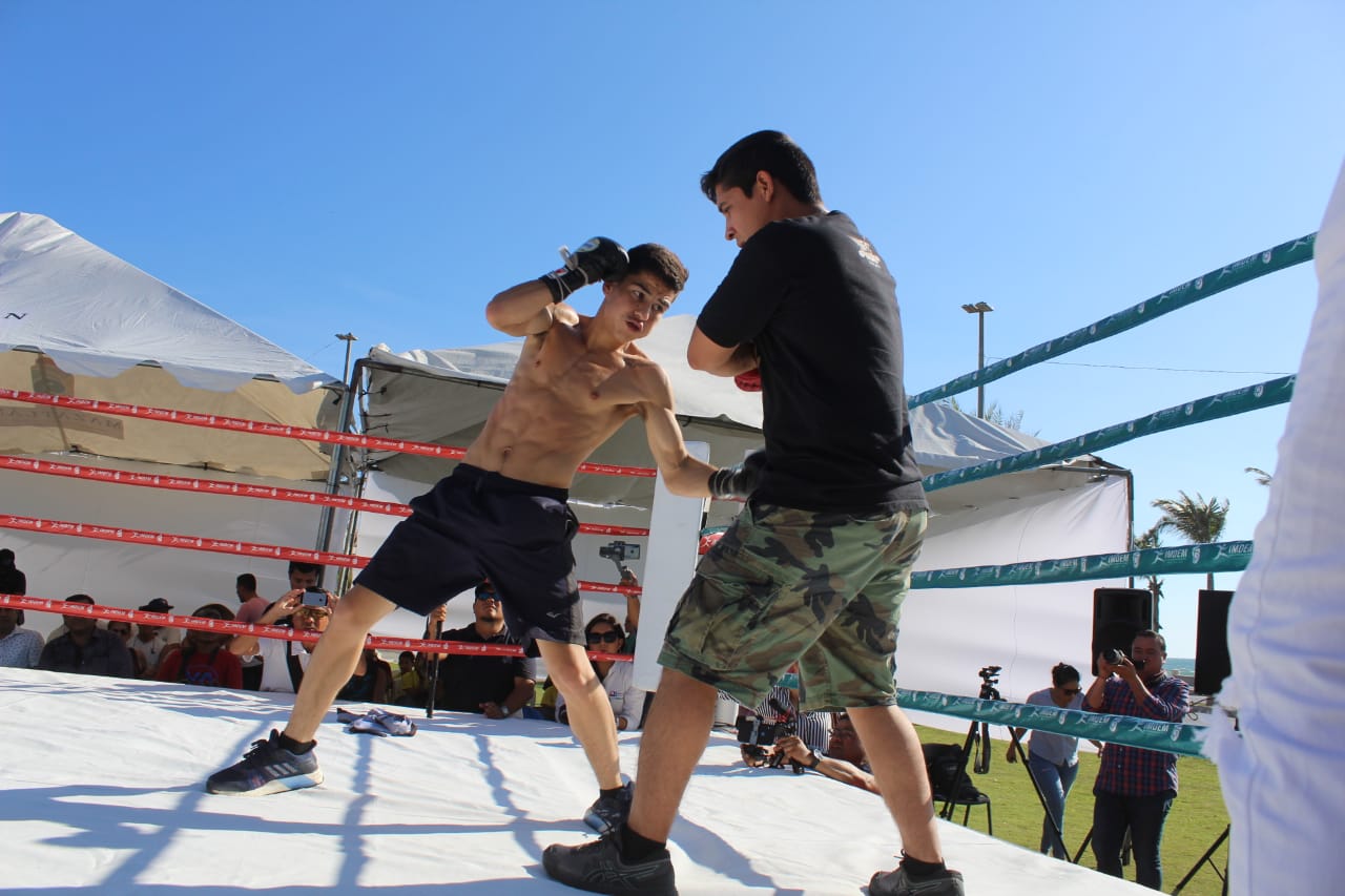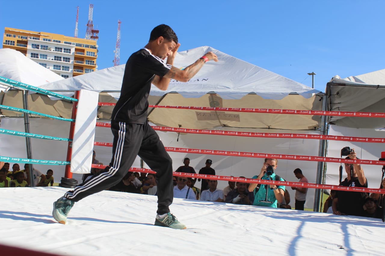 Bajo la mirada del alcalde Luis Guillermo Benítez Torres, Ricardo Lozada, coordinador de Promociones del Pueblo, Humberto Álvarez Osuna, director del Instituto Municipal del Deporte, más de 100 fanáticos y con el hermoso pacífico mexicano como marco, los pugilistas sinaloenses y el boricua dieron una muestra de lo que ofrecerán este fin de semana en el Centro de Usos Múltiples.