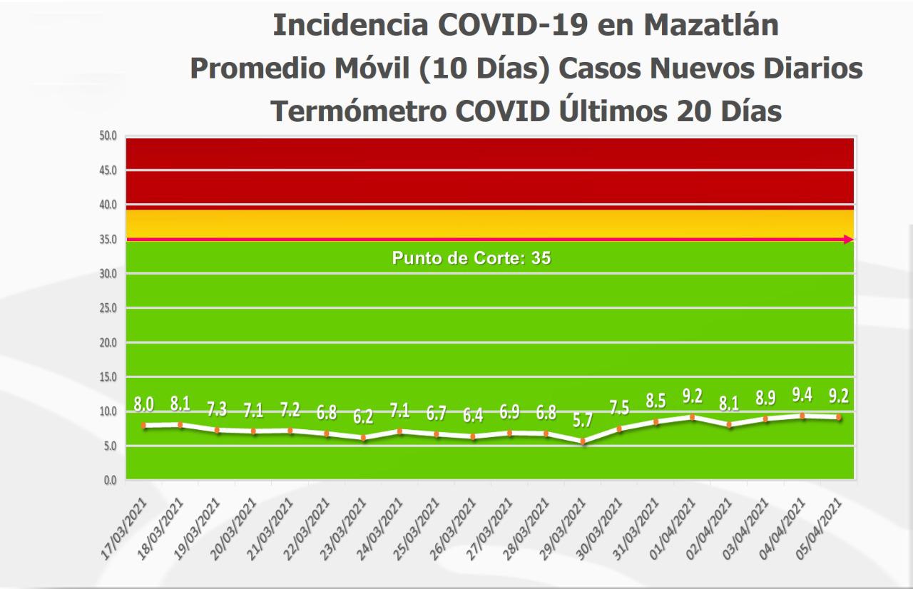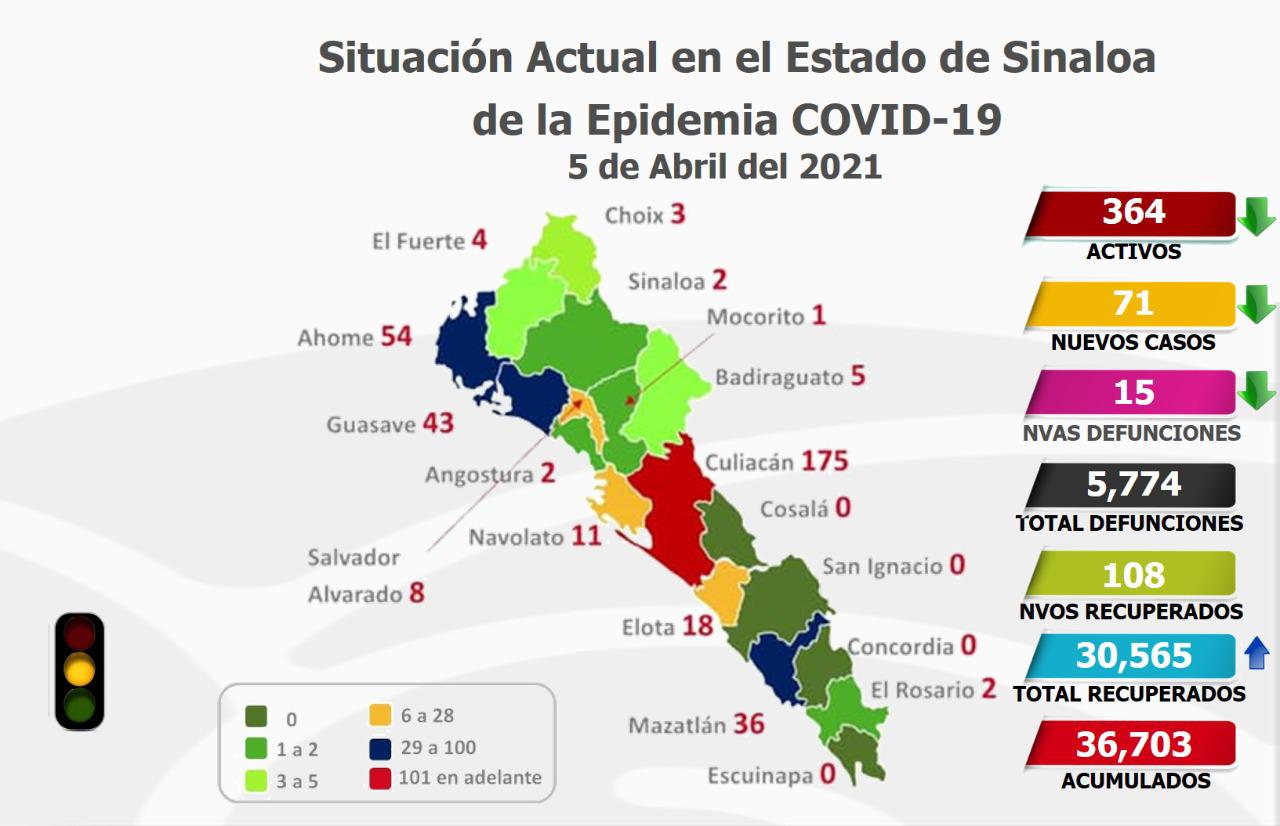 Con esta cifra, Mazatlán continúa en color azul del Semáforo Epidemiológico Estatal y también de los cuatro municipios con más población, el que tiene menos personas con esta enfermedad, por debajo de Culiacán (175), Ahome (54) y Guasave (43).