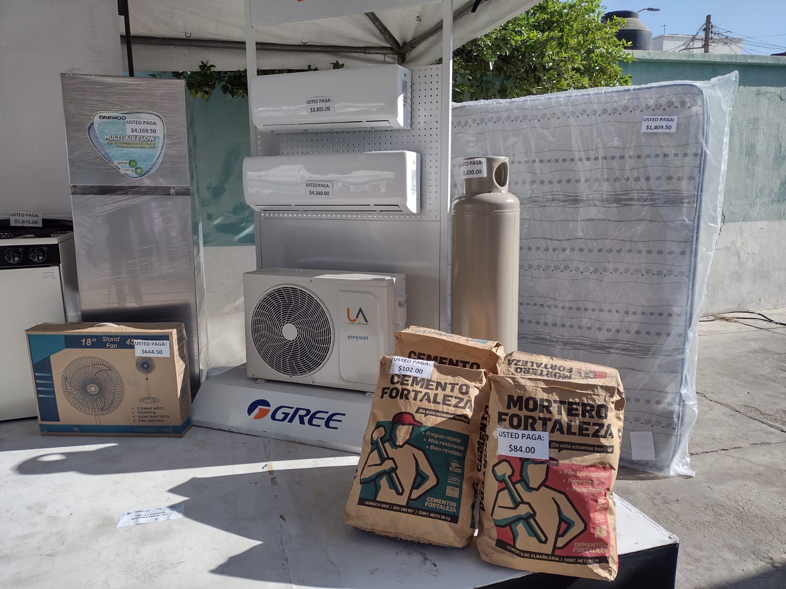 Explicó que con el «Peso a Peso», «50-50» y «Almacena tu Agua» buscan ayudar a las familias a adquirir productos de marcas reconocidas a mitad de precio, como muebles y enseres domésticos, material para construcción y equipos como tinacos y cisternas.