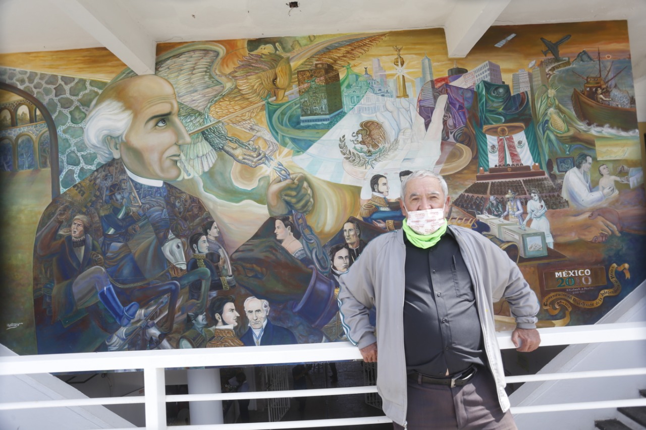 Óscar Castillo Vega, autor de los dos murales que se encuentran en el Ayuntamiento, uno en el exterior y el otro en la Sala de Cabildo, tiene 65 años de edad y desde pequeño mostró su gusto por el arte.