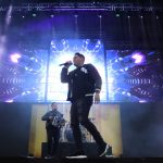 Un acordeón con las letras EM realizaba acrobacias en la pantalla, sonido impecable, el concierto comenzaba, “Como quieras quiero” un tema escrito por Edén Muñoz arrancó la aclamación del público.