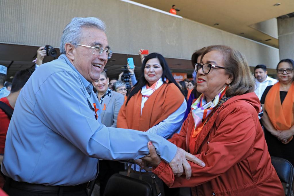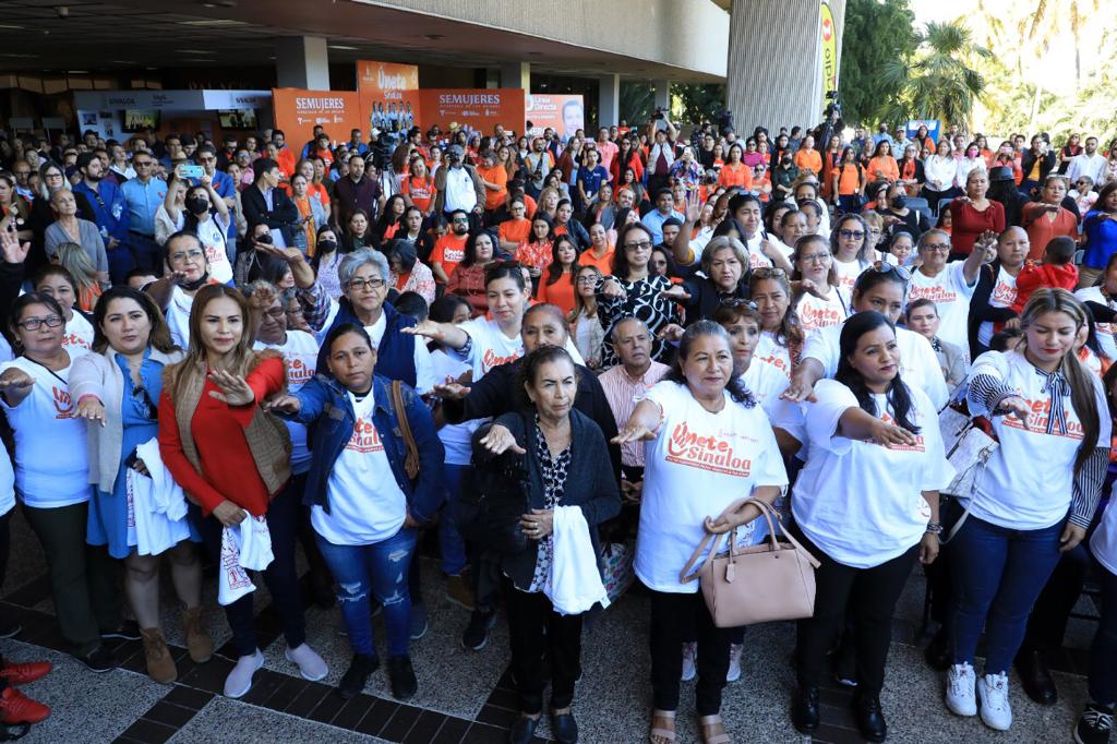 Acompañado por la secretaria de las Mujeres, Tere Guerra Ochoa, quien fue la organizadora de este evento, y también por la presidenta del Sistema DIF Sinaloa, la doctora Eneyda Rocha Ruiz, el mandatario estatal también tomó protesta a las integrantes de la Red de Mujeres Constructoras de Paz, compuesta por luchadoras sociales y defensoras de los derechos de la mujer, de los municipios de Mazatlán, Ahome, Navolato y Culiacán, principalmente.