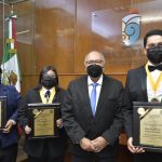 Para recibir sus reconocimientos, al despacho del Alcalde asistieron Ahumada Arámburo, Manuel Alberto Bernal Dávalos, ganador en la categoría Artística; y Carlos Antonio Ramos García, en Académico y Tecnológico.