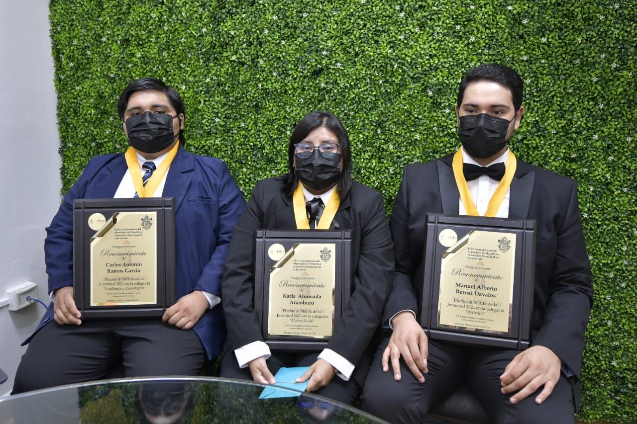 Para recibir sus reconocimientos, al despacho del Alcalde asistieron Ahumada Arámburo, Manuel Alberto Bernal Dávalos, ganador en la categoría Artística; y Carlos Antonio Ramos García, en Académico y Tecnológico.