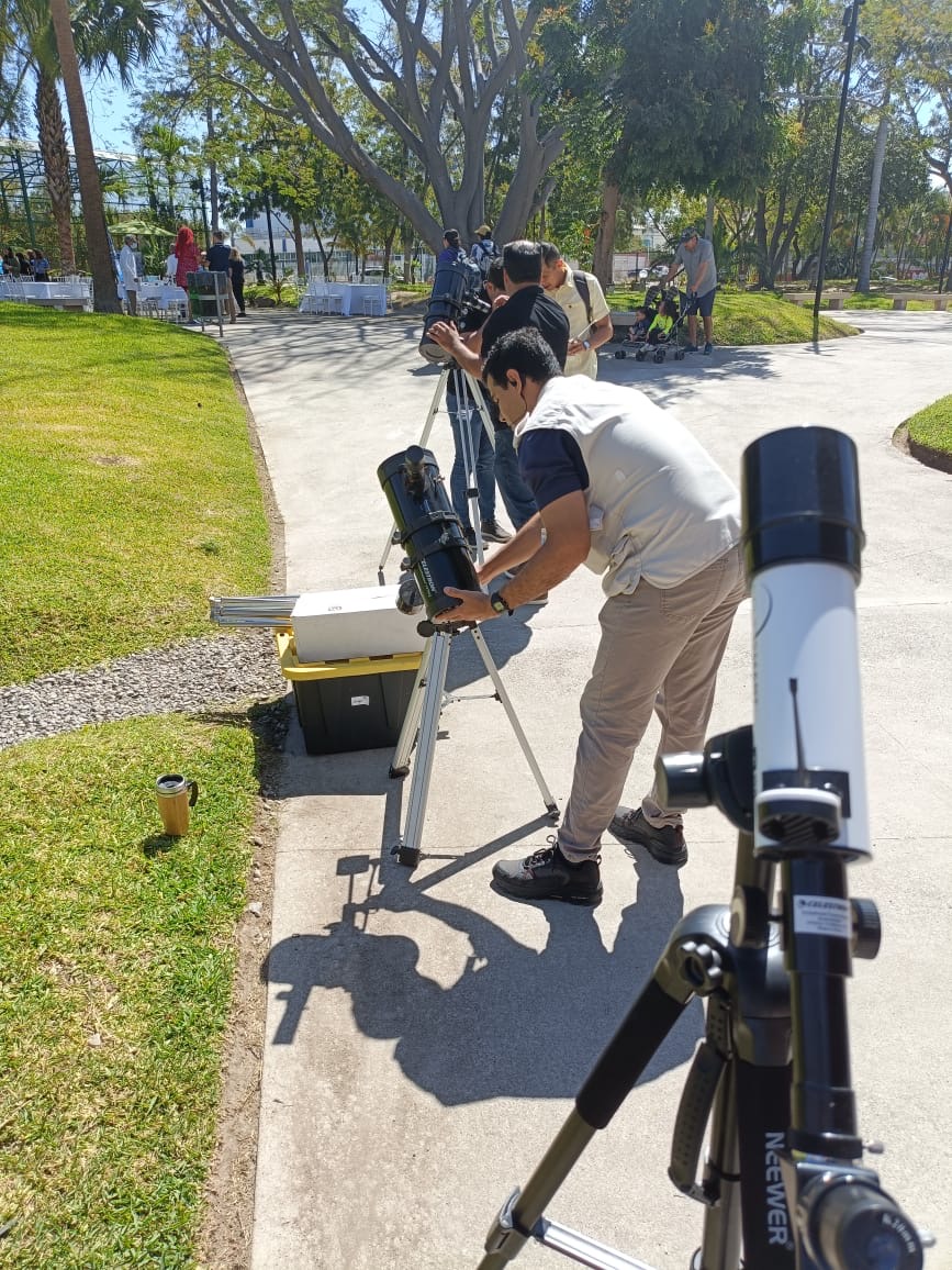 Quienes asistan al Gran Acuario en estos días, además de conocer la Colección del mar de Cortés que se exhibe en nuestro recinto y todas sus experiencias, podrán disfrutar de una serie de actividades, incluso, hasta tocar luna, la Dra. Adreissa Páez, Directora de Comunicación de la Ciencia en el Gran Acuario, nos amplía la información “ y comenzamos con las charlas que van a estar dando Gregg Schmith, Brian Day, Mario Arreola, en el Salón de las aves, van a ser charlas de tinte divulgativo, de manera casi simultanea a las 10 de la mañana, comienzan en espacio abierto, exteriores del Gran Acuario Mazatlán, específicamente a un costado de Casa Guacamaya, es el aviario que tenemos ahí, eso es para el día de hoy, los talleres cierran aproximadamente a las 2 de la tarde. El día de mañana vamos a seguir con los talleres ofertados por Gran Acuario Mazatlán enfocados en la astronomía y específicamente en la observación segura del eclipse. El día sábado y domingo, vamos a tener charlas, como talleres de 10 de la mañana a 2 de la tarde con la presencia del INAOE (Instituto Nacional de Astrofísica Óptica y Electrónica) y también con la presencia de jóvenes talleristas y divulgadores de la Benemérita Autónoma Universidad de Puebla. Cerramos el día lunes con broche de oro con el enfoque del Gran Acuario Mazatlán presentando talleres y vamos a estar presentando charlas previas a la exhibición de aves explicando que ocurre con los animales cuando hay eclipses, eso, lo estaremos presentando todos los días a partir de mañana previo a las exhibiciones de aves, y bueno, el día del eclipse, el lunes 8 vamos a acompañar a todos nuestros visitantes a observar de manera segura el eclipse en su totalidad”.