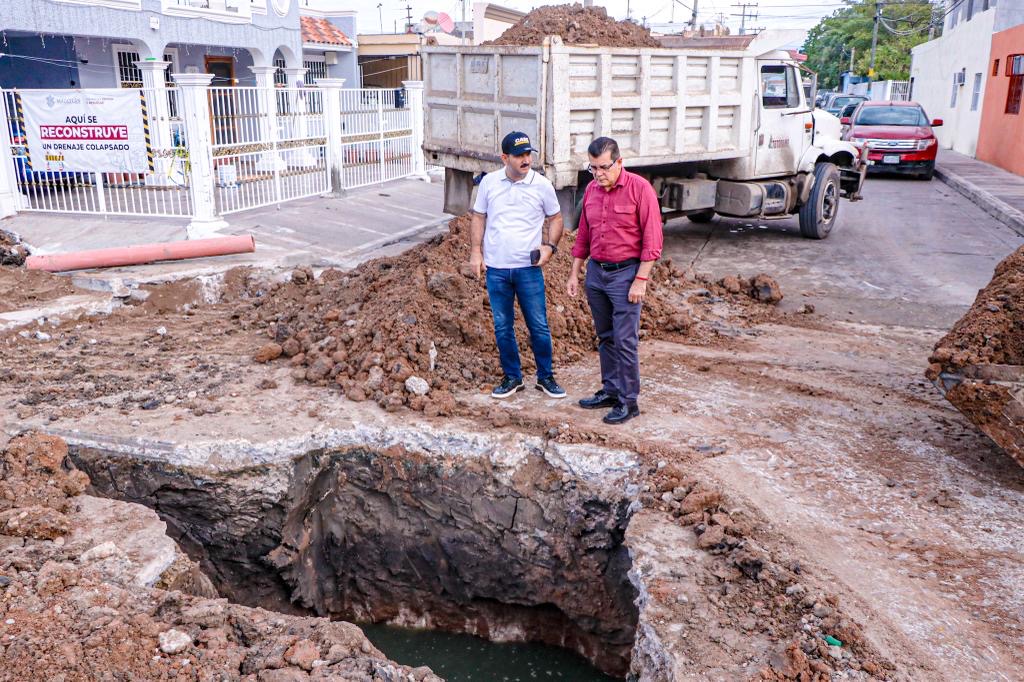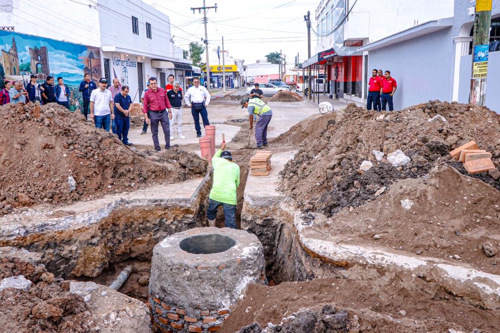 Para finalizar las autoridades supervisaron el avance de la colocación de lozas que se realiza en la zona donde se reparó el colector ubicado en Avenida Las Torres en el fraccionamiento Prados del Sol.