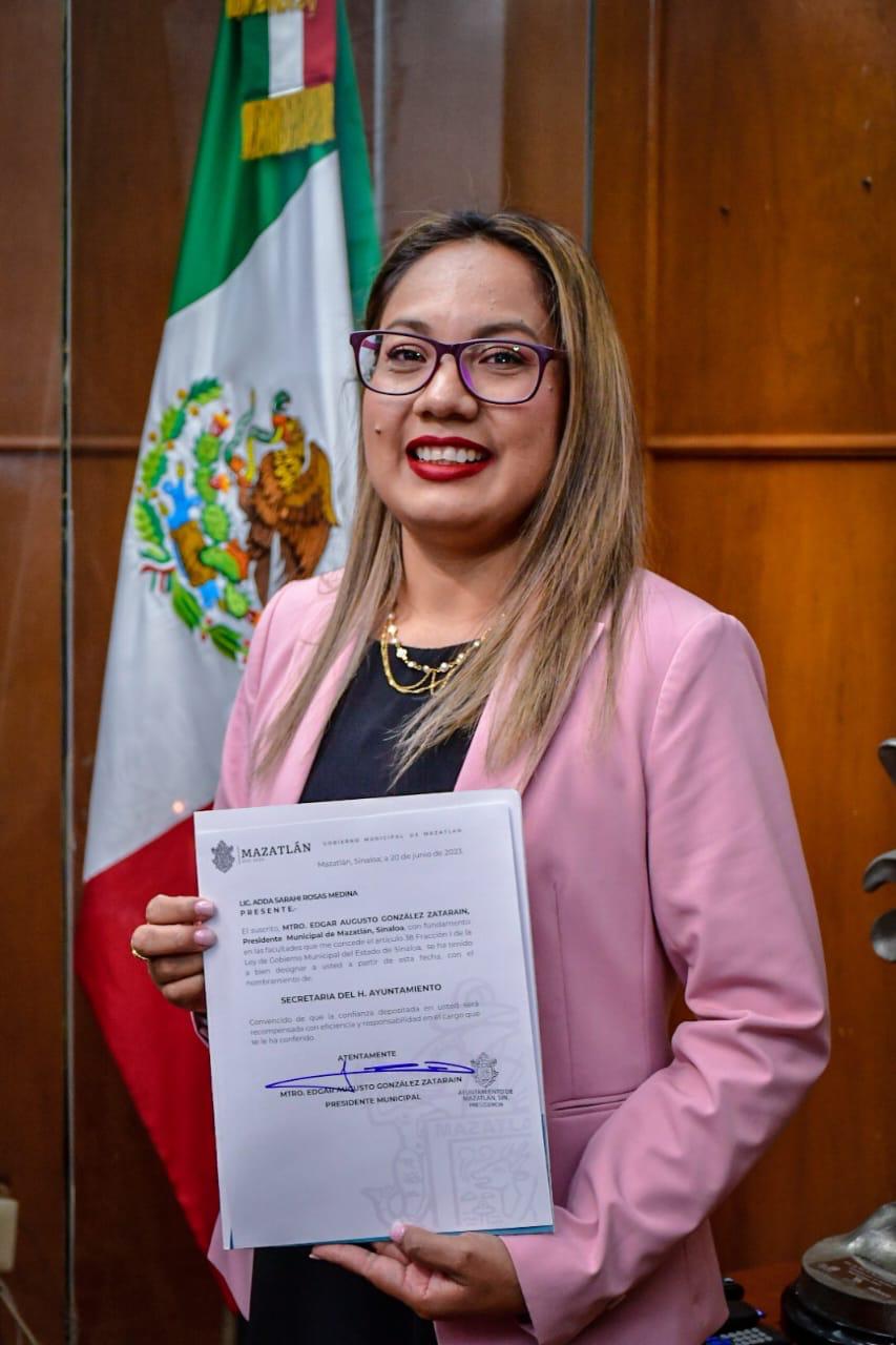 Mazatlán, Sinaloa a 20 de junio del 2023.-En Sesión Extraordinaria de Cabildo número 25, regidores por unanimidad aprobaron la propuesta presentada por el Alcalde Edgar González de nombrar en el cargo de Secretaria del Ayuntamiento a Adda Sarahí Rosas Medina.
