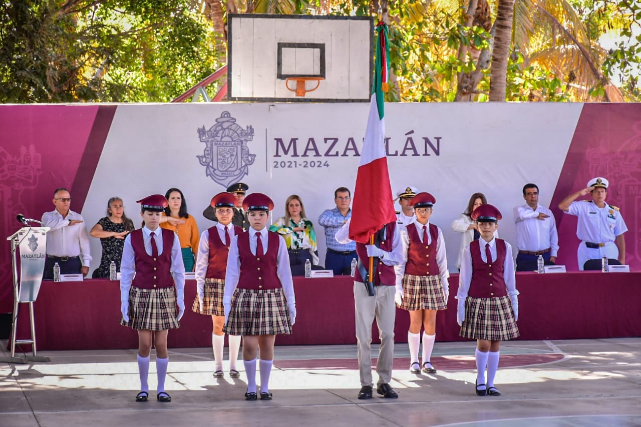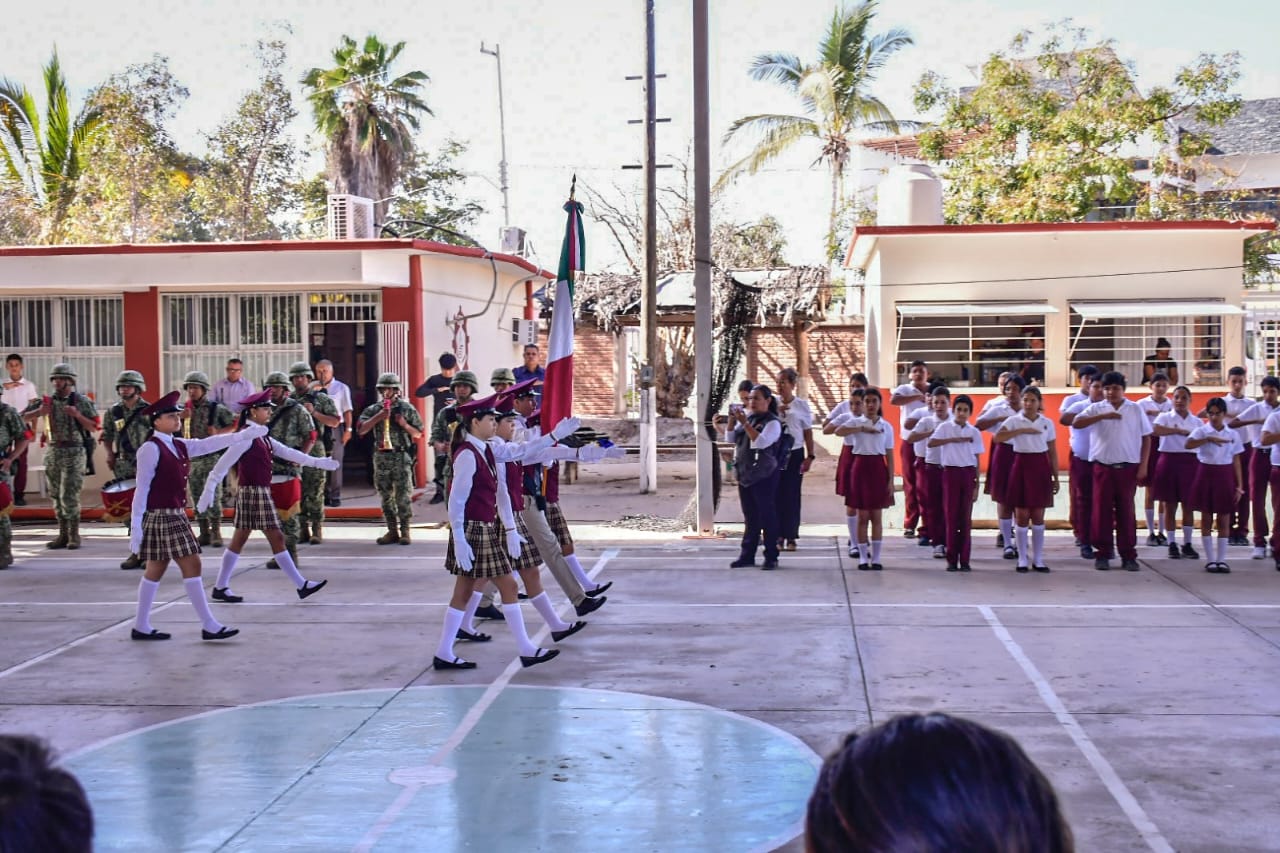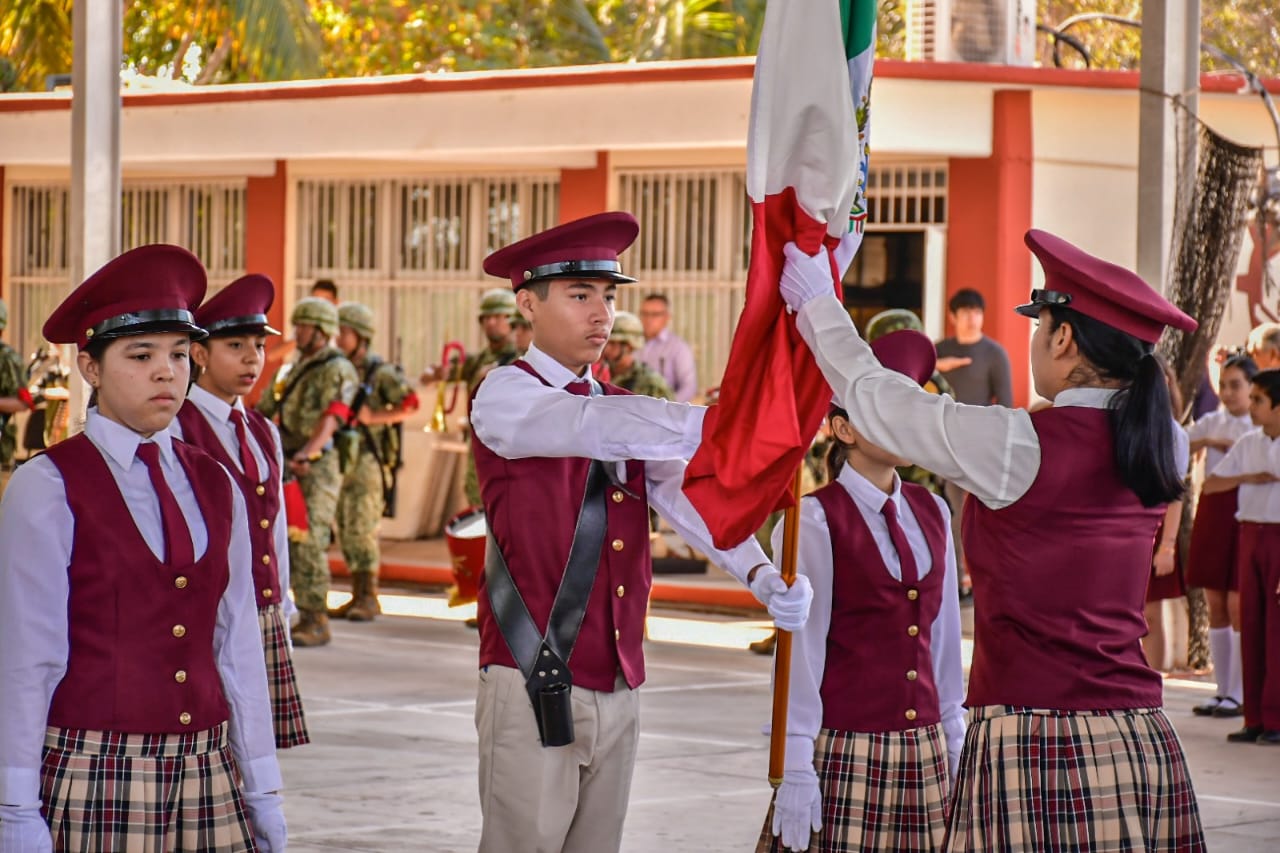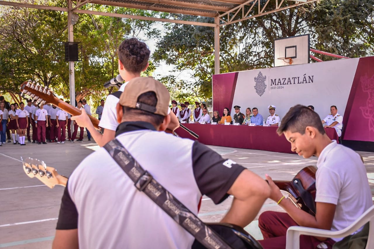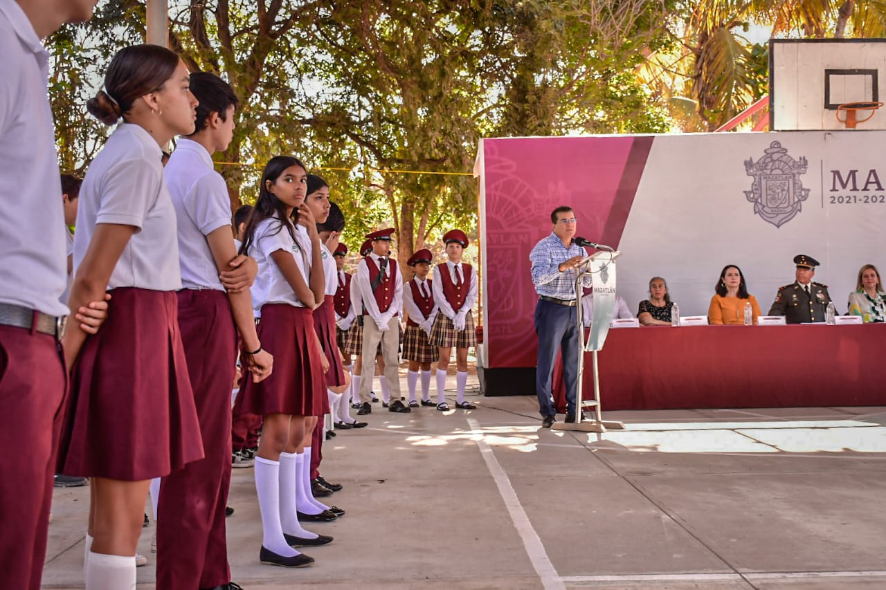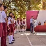 Mazatlán, Sinaloa a 24 de abril de 2023-. En el marco del lunes cívico en la secundaria técnica número 88 de la Isla de la Piedra, Edgar González refrendó su compromiso con el sector educativo.