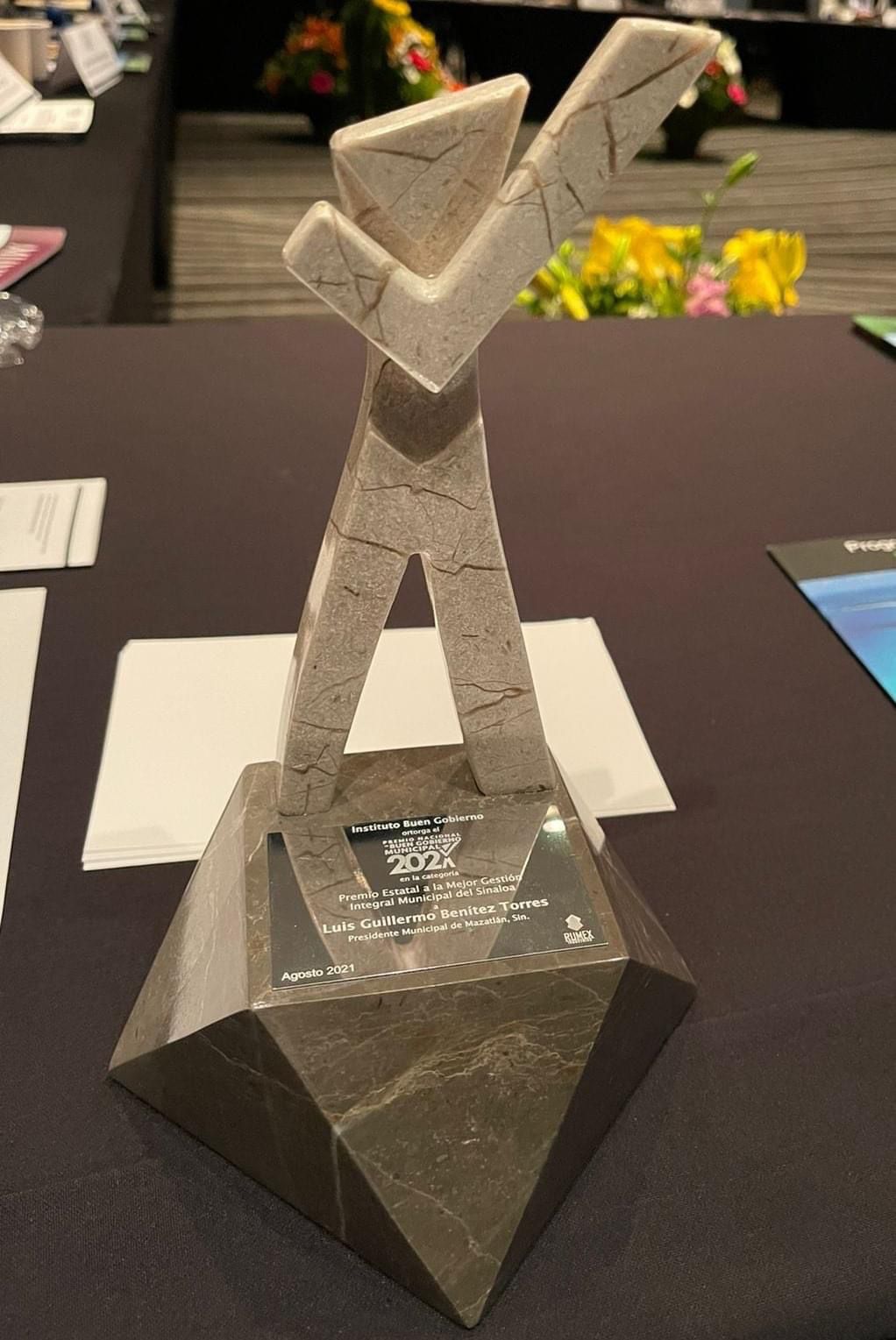 Ciudad de México.- Luis Guillermo Benitez Torres, presidente municipal de Mazatlán recibió esta tarde una estatuilla que lo acredita como el alcalde promotor de la mejor gestión integral municipal de Sinaloa.