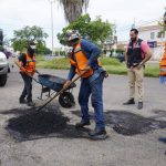 Para mejorar las condiciones de las avenidas más transitadas de la zona urbana del puerto, una cuadrilla de 10 trabajadores realizó esta labor debido a que las vialidades se encuentran dañadas por la humedad que provocan las lluvias de la temporada.