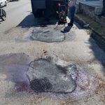Con la maquinaria, y cuatro trabajadores de la dependencia del área operativa, se aplicaron 3 metros cúbicos de asfalto para cubrir un área de 30 metros cuadrados de baches en ambas vialidades.