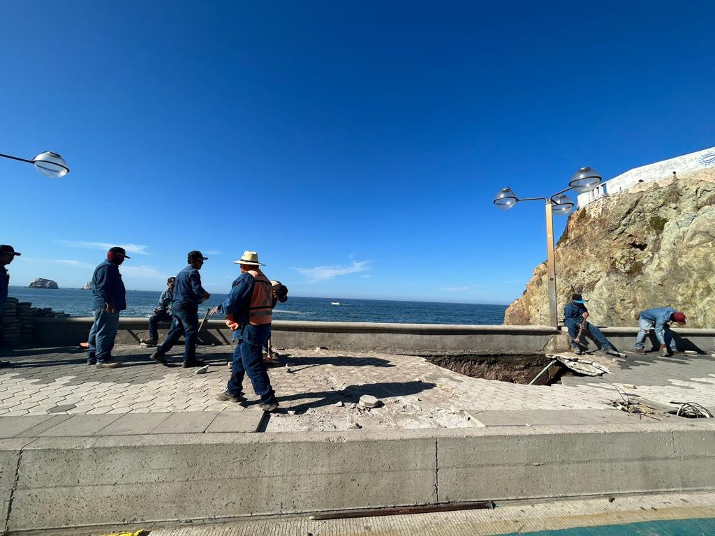 Mazatlán, Sinaloa a 22 de noviembre del 2022.- El personal de Obras Públicas del Gobierno Municipal empezó a temprana hora los trabajos de reparación en la zona afectada donde se presentó un socavón en un tramo del Paseo Claussen, a la altura de la Cueva del Diablo, informó el titular de la dependencia, Rigoberto Arámburo Bojórquez.
