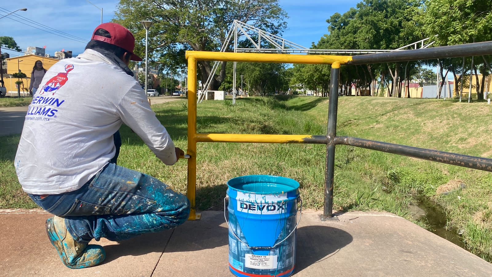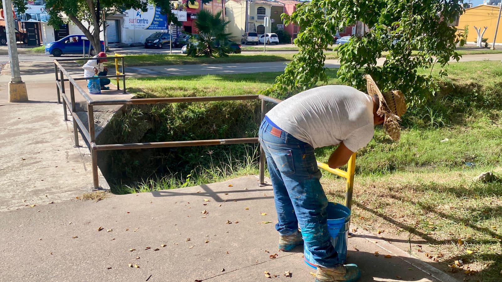“Hoy culminamos la colocación de algunos barandales de herrería con tubulares en el canal que comunica de Hogar del Pescador al Alarcón sobre el Libramiento II, estos barandales se fabricaron en el departamento de obras públicas, ya fueron instalados, se anclaron con unas placas y se pintaron en color amarillo”, expresó Rigoberto Arámburo.