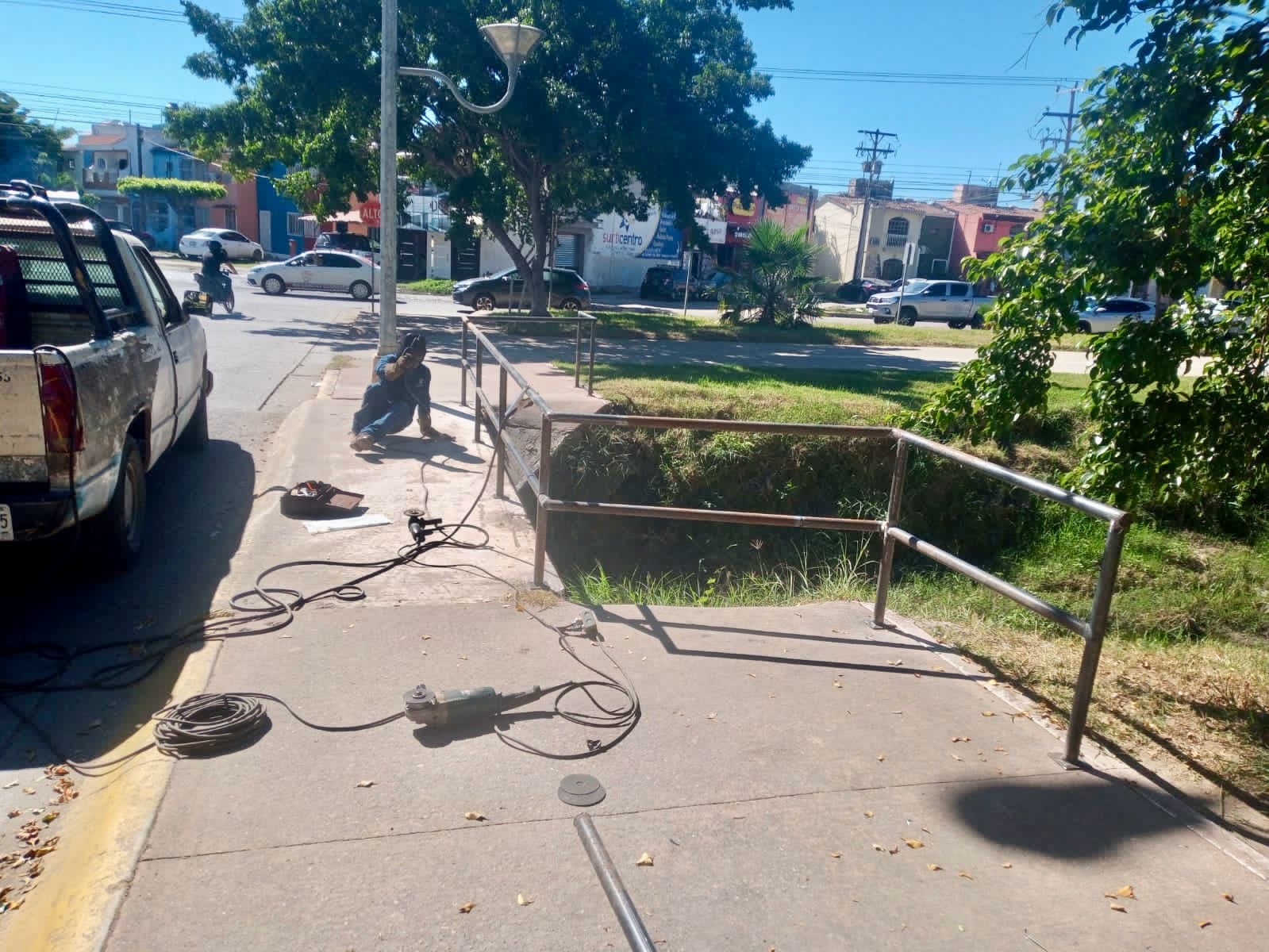Mazatlán, Sinaloa 29 noviembre 2023-. Sobre el Libramiento II, en el canal pluvial que se ubica en el Parque Lineal a la altura del Infonavit Alarcón, se instalaron barandales de seguridad por parte de la Dirección de Obras Públicas dando cumplimiento al compromiso del Alcalde Edgar González.