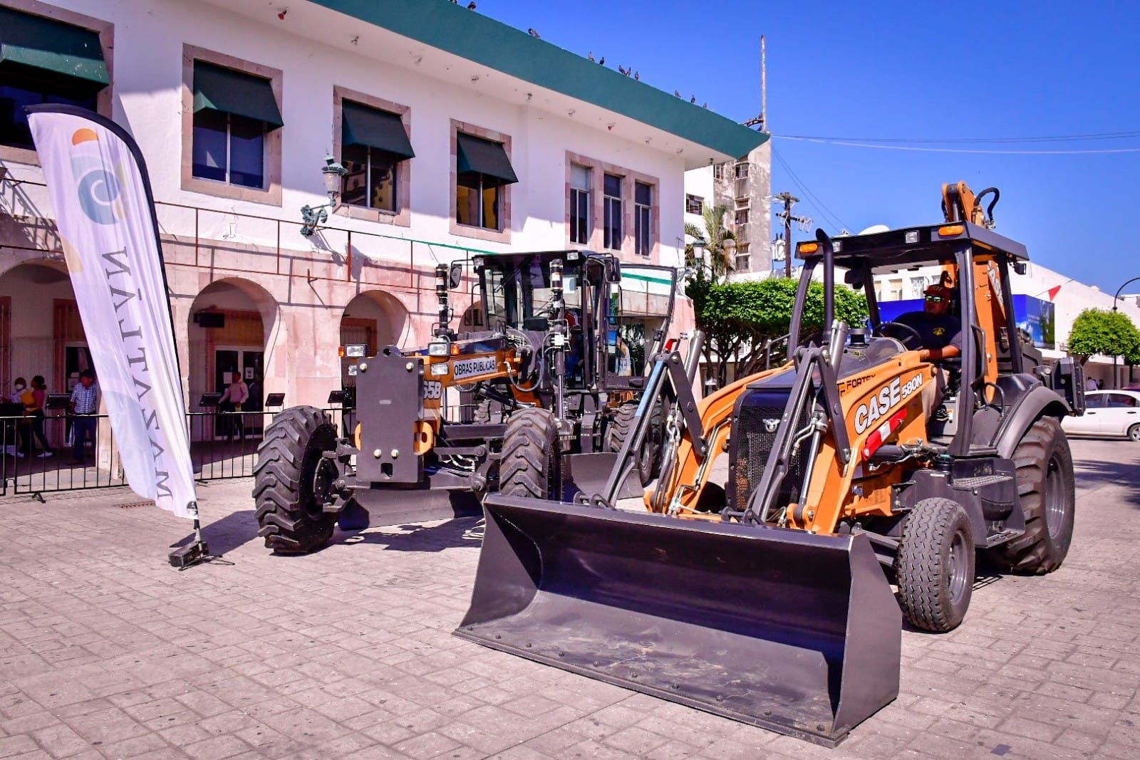 En la explanada de la Plazuela República, el Primer Edil, hizo entrega al personal operativo de la Dirección de Obras Públicas de dos motoniveladoras y una retroexcavadora, que representan una inversión superior a los 13 millones de pesos.