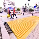 Mazatlán, SIN.- Dando continuidad a la campaña “Camina Seguro”, implementada por el Gobierno Municipal, esta semana se instalaron en el nuevo paso peatonal diversas señaléticas y bolardos a los costados del también reductor de velocidad ubicado en calle 21 de Marzo, esto con el fin de reforzar la protección del peatón y el automovilista que transita por la zona.