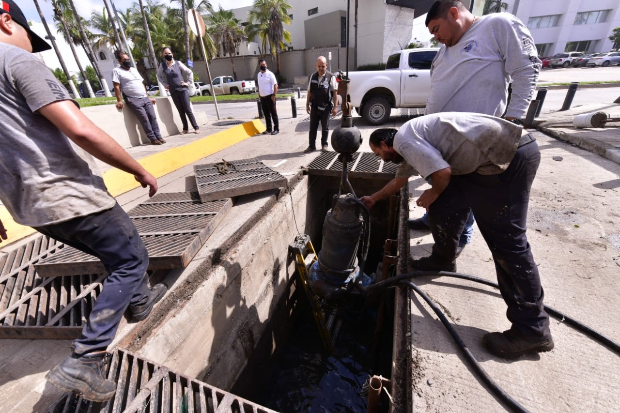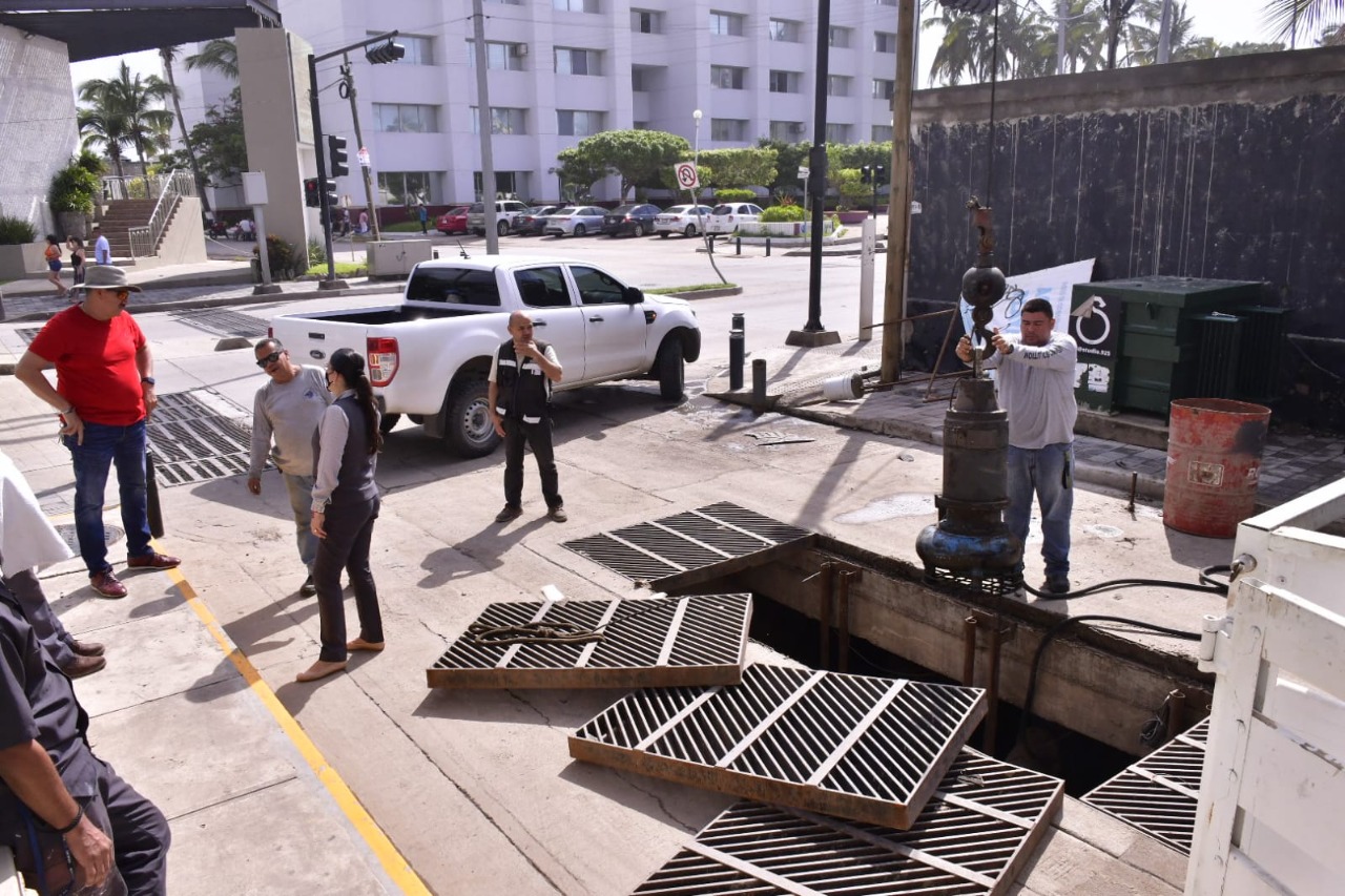 Mazatlán, SIN.- Personal de la Dirección de Obras Públicas del Gobierno Municipal reparó el cárcamo de bombeo de aguas pluviales, ubicado a la altura de las oficinas de CONAPESCA, debido a una de las bombas del equipo se quemó a causa del exceso de basura arrastrado por las intensas lluvias, informó Luis Gerardo Núñez Gutiérrez, titular del área.