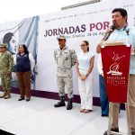 En el evento, estuvieron presentes también Judith Martínez Montes, Coordinadora Regional de la Mesa de la Paz del Gobierno Federal; el Capitán Primero de Infantería, Iginio Marino Nava, del Octavo Batallón de Infantería; Segundo Maestre Infante de Marina, Santiago López de los Santos, de la Cuarta Región Naval; Teniente Coronel, Guillermo Caballero de León, Comandante del Puesto de Mando Avanzado de la Guardia Nacional; Jessica Patrón Ledesma, Coordinadora Regional Zona Sur del Servicio Estatal del Empleo; y Arantxa Fernanda Ahumada Rosas, Directora del Instituto Municipal de la Juventud (IMJU).