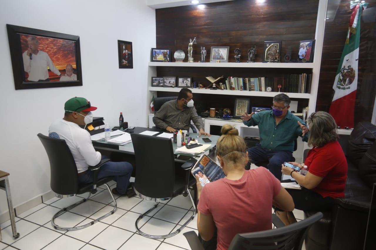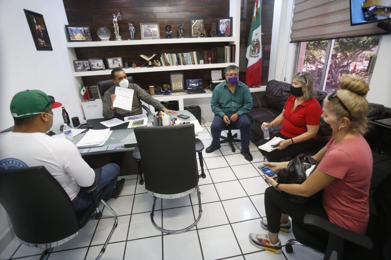 Esta tarde, José de Jesús Flores Segura, Secretario del Ayuntamiento, y Tonatiú Guerra Martínez, titular de Bienestar Social, atendieron en Palacio a un grupo de vecinos inconformes que previamente había bloqueado un carril de la Rafael Buelna.
