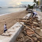 Desde las 6:00 de la mañana, hasta las 12:00 del mediodía, el personal recogió mayoritariamente palos y grandes troncos del sitio, que fueron arrojados por el mar debido a las lluvias que se han registrado en zonas serranas del municipio, además de restos de palapas que fueron dañadas por el fuerte oleaje que se registró en días pasados.